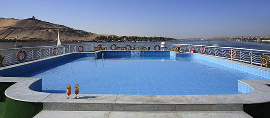 The Iberotel Crown Empress is the largest vessel in Travcotel’s fleet. It measures approximately 110 meters in length and is designed to give all guests a real taste of sailing aboard a premium Nile cruise liner. The Crown Empress has the space to give you the ultimate in Nile cruising holidays in complete freedom and comfort. This majestic ship is crewed by professional and exemplary staff from the Iberotel Hotels, Resorts and cruises team, making a cruise with the Empress an experience that you will always remember. You can enjoy yourself with the entertainment programmes at the ship’s distinctive bar and lounge serving imaginative drinks and cocktails. For days when there is no sightseeing you can always laze by the pool with a refreshing drink in hand, admiring the distinctive scenery blending natural beauty and ancient wonders as they glide by. Split over five-decks (accommodation on four) this majestic vessel has all the amenities and facilities you could desire for a perfect, personalised, Nile cruise holiday.