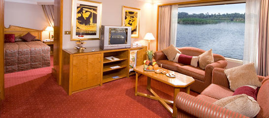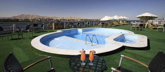 Cruise in comfort and style onboard the Deluxe Five-star Jaz Regency. Relax, discover the beauty of the Nile, be entertained and enjoy the marvels of ancient Egypt. The Jaz Regency features a round-the-clock reception service as well as internet facilities, international telephone and fax (against charge) with a meeting space available if the ship is fully chartered. The Suites offer very comfortable and spacious seating and living areas with plenty of storage space. You can relax on the large sun deck with swimming pool and pool bar, visit gift shop or take your ease in the luxurious lounge or pamper yourself in the Jacuzzi.