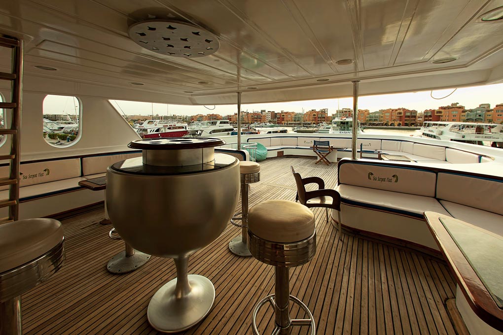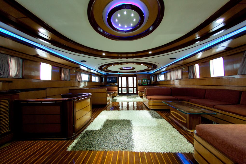 The M/Y Grand Sea Serpent provides ample space with her main deck salon which is equipped with the latest in entertainment equipment.