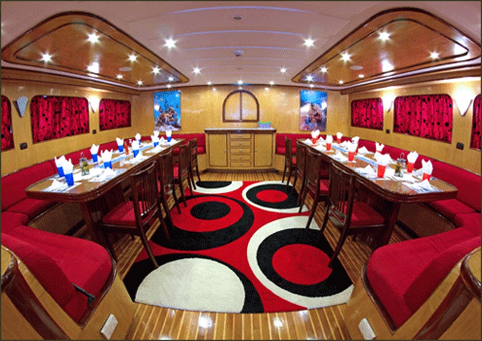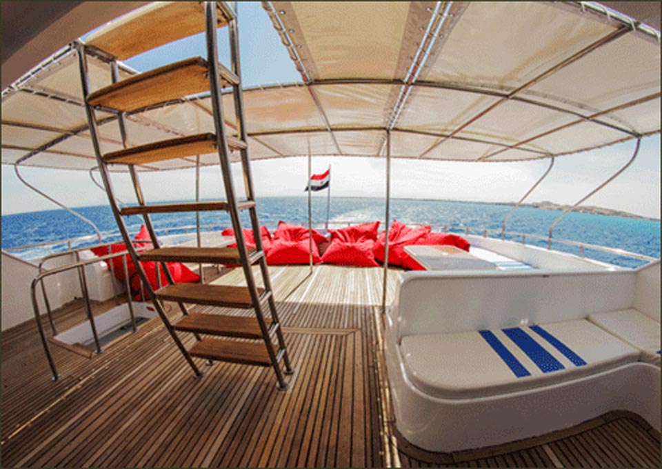 The vessel boasts a large communal dining and saloon area with entertainment system, shaded deck area and two sun decks; there is always space to relax and enjoy the beauty of the Red Sea!
