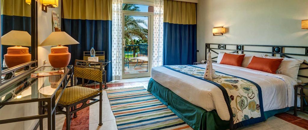 Club Paradisio El Gouna is an all-inclusive beachfront resort built along the nicest bay of El Gouna on the Red Sea coast of Egypt. A myriad of activities, cheerful entertainment, and friendly service characterize this comfortable retreat in a beautiful natural setting. Guests of Club Paradisio also have access to all the facilities of the sister hotel Steigenberger Golf Resort located nearby and conveniently reached by shuttle boat. In addition, shuttle bus and boat transportation is available to make the most of the facilities on offer within the fully integrated holiday resort community of El Gouna. A wide array of shopping, dining, and entertainment hotspots are found only a few minutes away in the colorful Downtown area and in the elegant Abu Tig Marina.