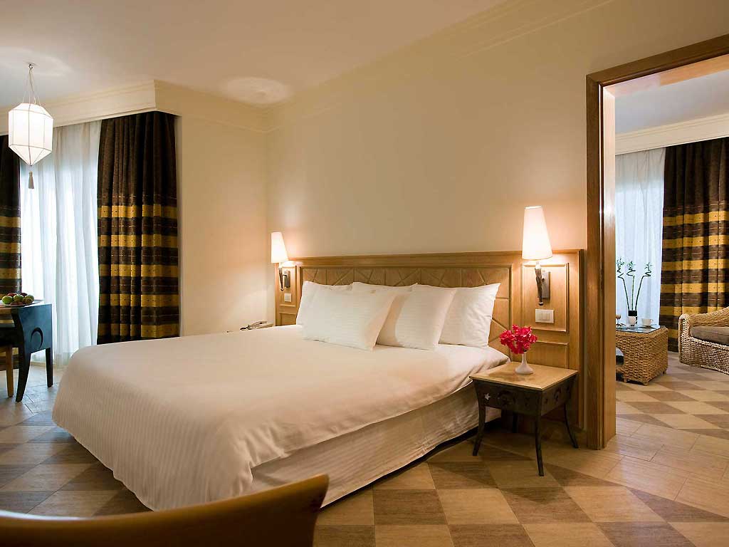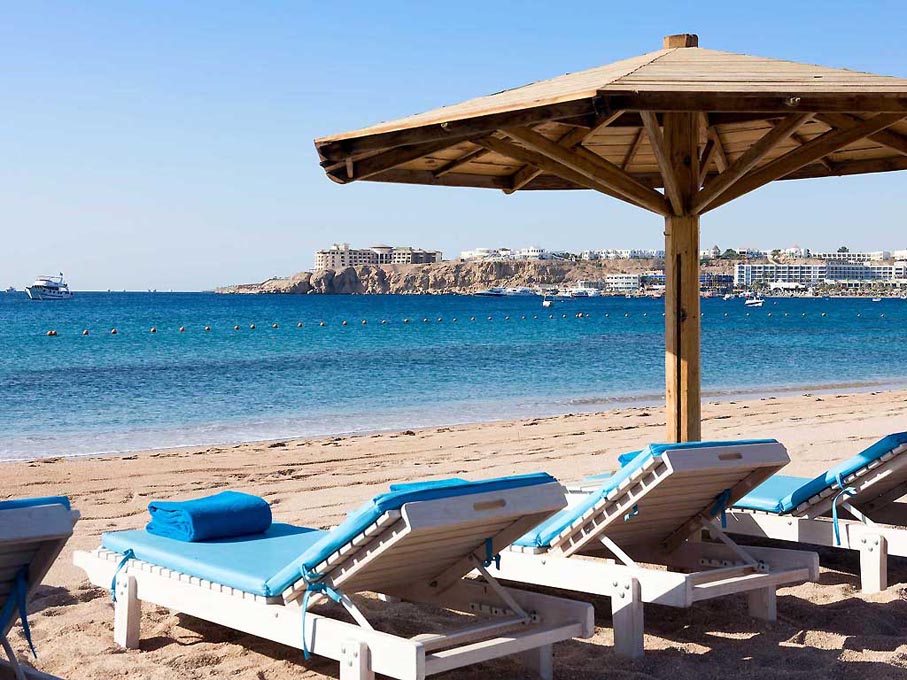 The Novotel Sharm El Sheikh is a 5 star hotel located on the picturesque Naama Bay in the Egyptian seaside resort town of Sharm el Sheikh. Enjoy the sun and the sea on the private beach or by the heated swimming pools. Whether with your partner or family, enjoy a unique holiday doing whatever you please. The Kids Club offers different programs of popular sports and a childrens pool. Relax at the bars, dine indoors or out at a choice of 3 restaurants, or enjoy the spa with oriental Hammam and massages.
